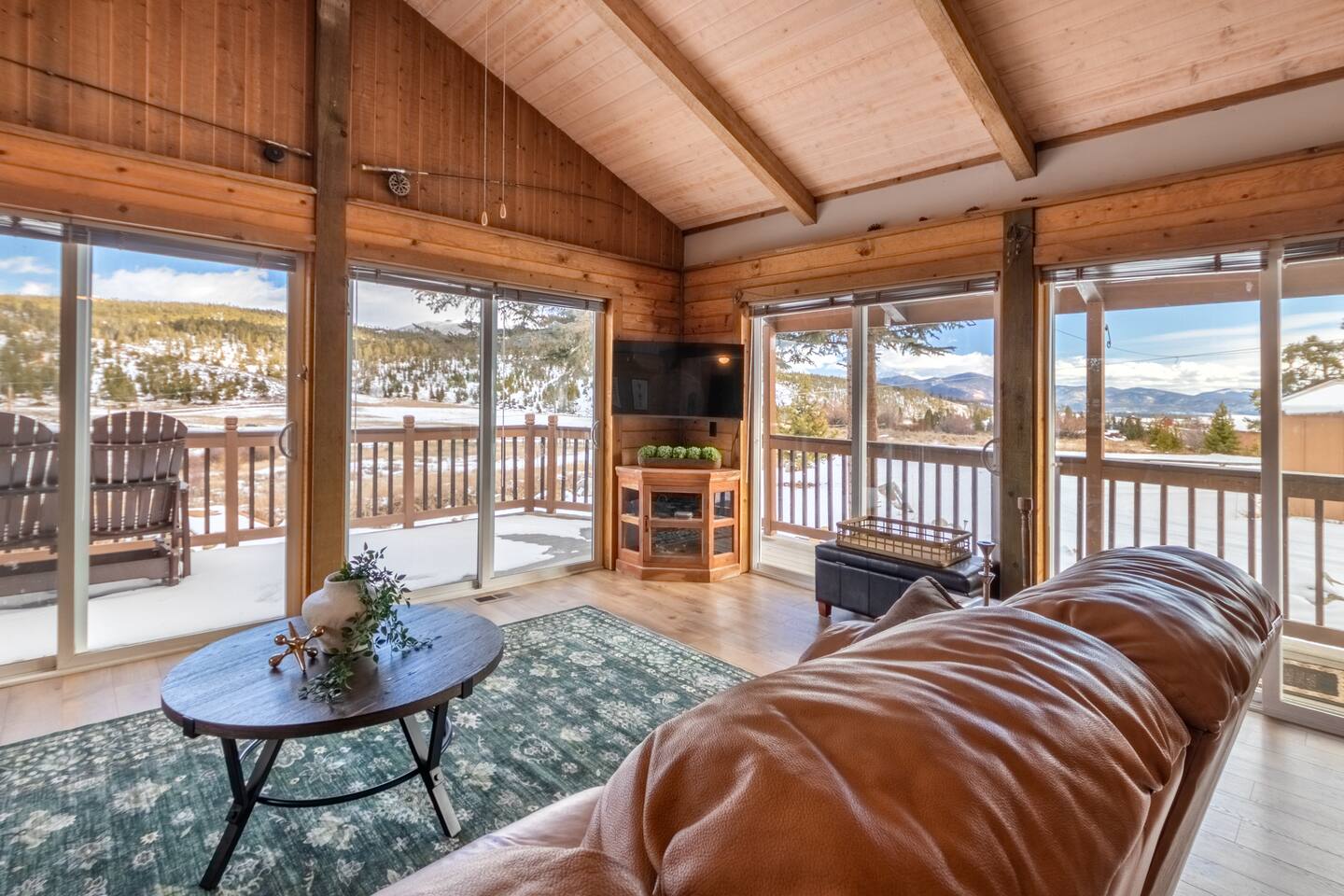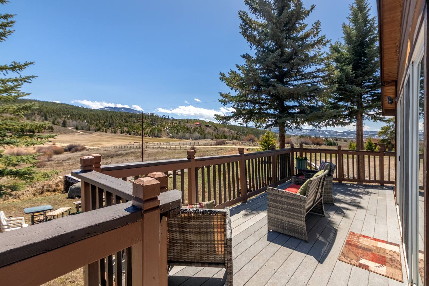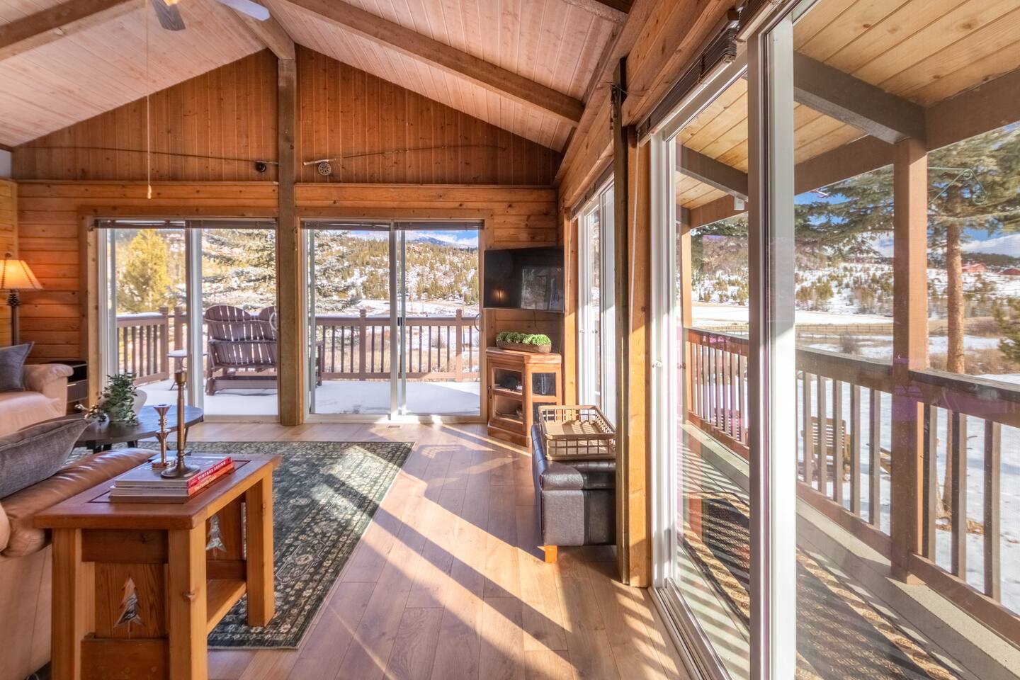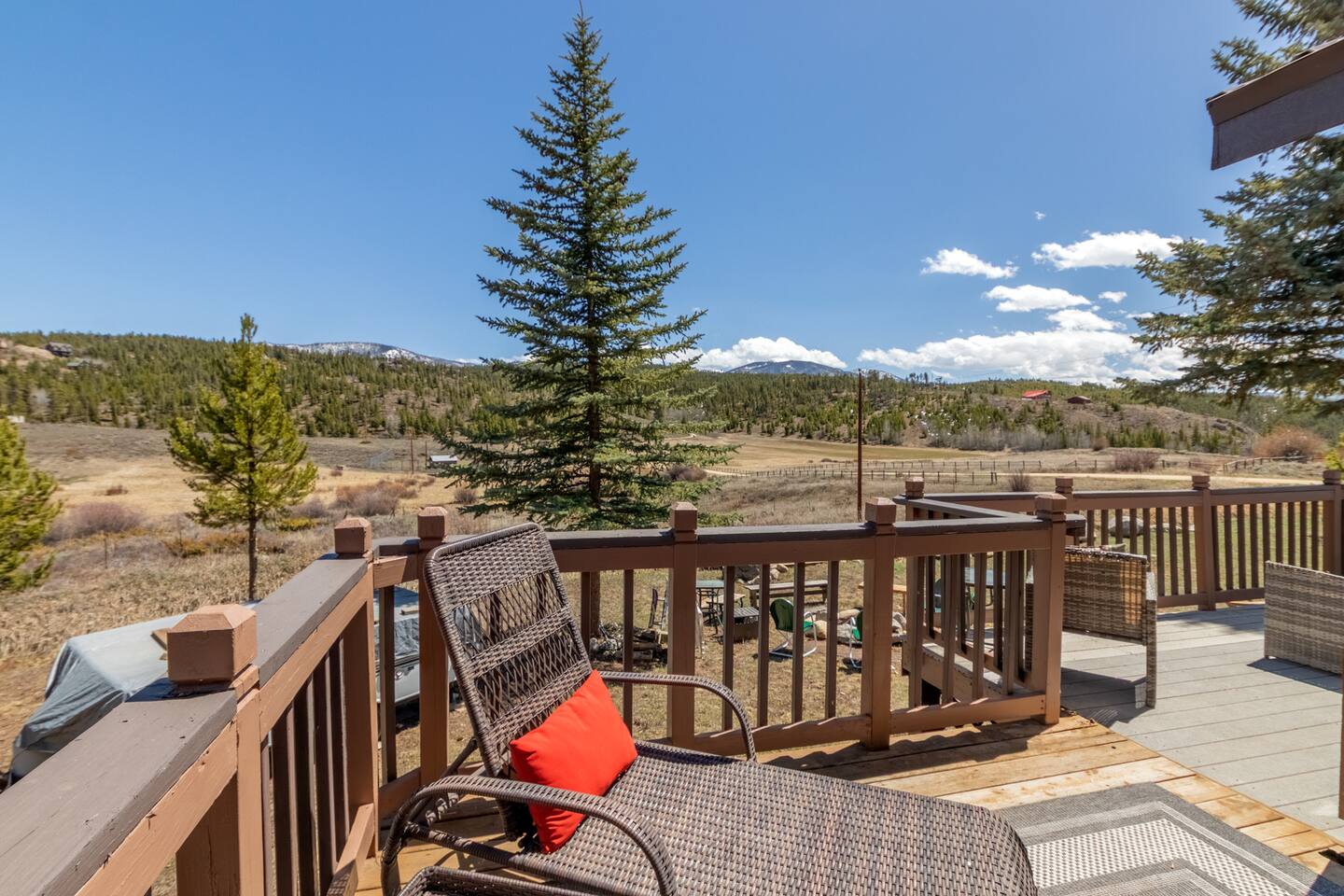 Escape to this peaceful mountain retreat with sweeping views of the meadows, surrounding peaks, and Lake Granby. Unwind on the spacious deck and watch wildlife graze below. Enjoy nearby hiking and biking trails, or stroll to Beacon Landing Marina for fishing, boating, or kayaking. In winter, explore miles of groomed snowmobile trails. With outdoor lounging areas and plenty of parking, it’s perfect for families and just 10 minutes from Rocky Mountain National Park and historic downtown Grand Lake